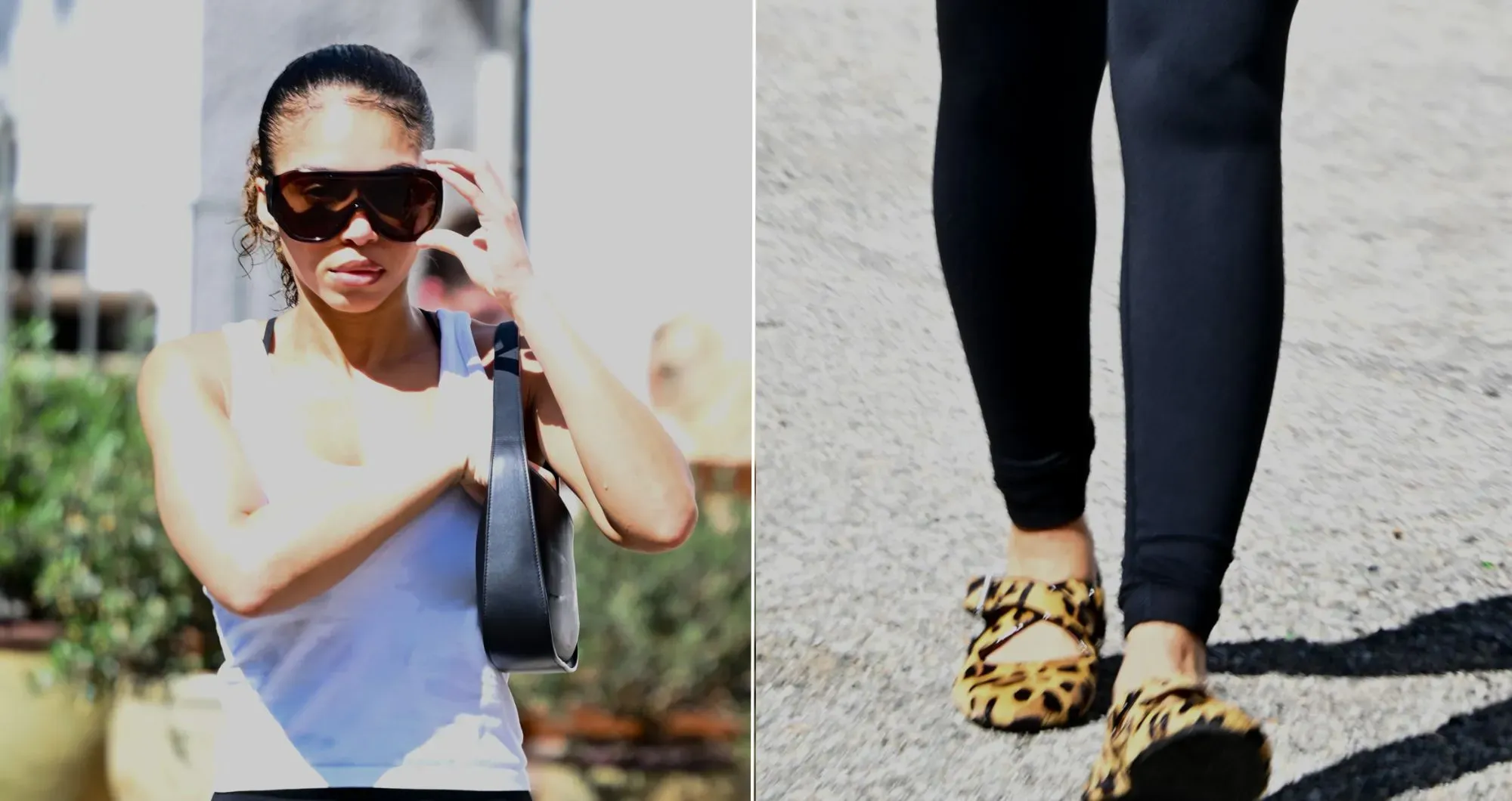 Harvey's Alaïa ballet flats retained the exposed-instep effect but replaced the heel and sharp front with a softer round toe, flat sole, and criss-cross straps. Animal print has been a constant in celebrity fashion this year, with examples like Rihanna, Teyana Taylor, and Angel Reese. Harvey's Alaïa pair brought that conversation down to flat footwear, maintaining the graphic charge of louder heels and booties, but translating it into something lower, tighter, and more off-duty.